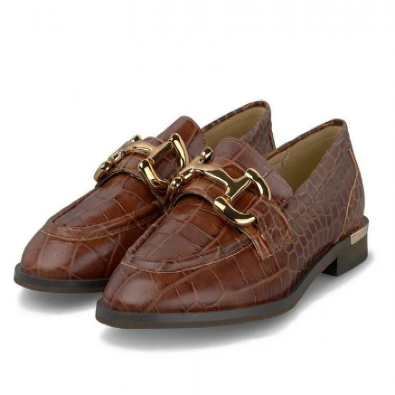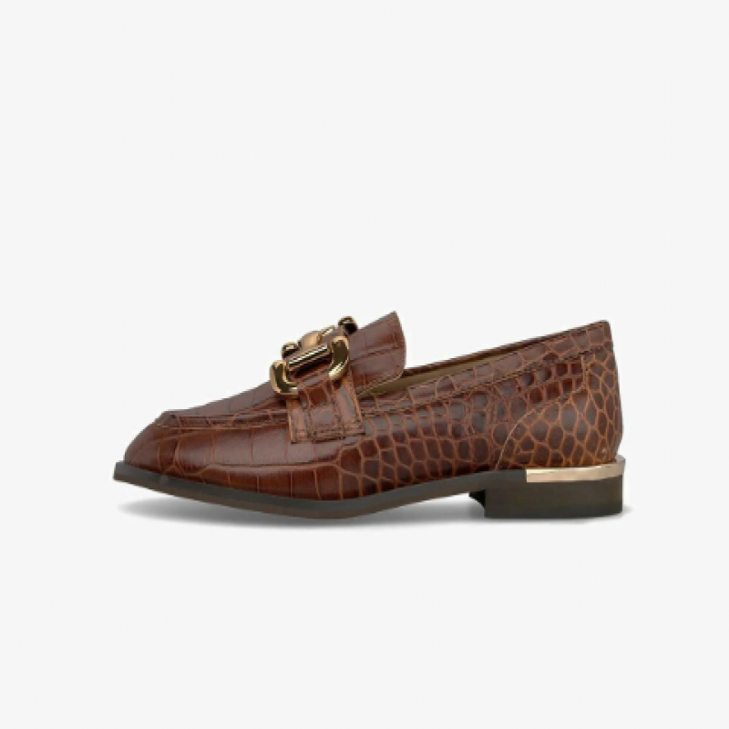 Detalhes: Costura mocassins, fivela